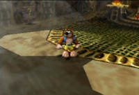 Story: The sequel to Banjo-Kazooie, probably the best platformer on N64. There is a story which is explained in a long cut-scene at the beginning of the game. I won't spoil it for you. Graphics: One of the highlights of B-K was the beautifully textured graphics. Well, this time they are even sharper, along with lighting effects... all at the cost of the framerate. It doesn't make the game unplayable, but the framerate is noticably bad. Nonetheless, the still image quality is incredible. To see a comparison between BK and BT, click here. Sound: More dynamic music and good sound effects. Nothing revolutionary, but very high quality. Play Control: All the moves you learned in the first game, plus a whole lot more. You can now separate Banjo and Kazooie in some areas. You can also play as Mumbo-jumbo, and morph into other forms like in the first game. Play Value: Yes, it is another collecting game, but in the time that I played it, I didn't think it was nearly as tedious as DK64. The puzzles are fresh and innovative and the game is very funny. However, once you finish it, you might not want to play it again for a while because this game is HUGE!!! Rating: E - Everyone. Cartoony violence. One character is killed at the beginning of the game. If you wanted to be really picky, some of the jokes could be taken the wrong way. Summary: There is no way you will beat this game in one rental. But you should at least rent it if you don't buy it. It is an excellent, witty game. One of the best on the system. |