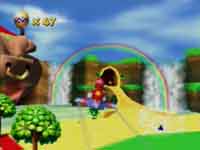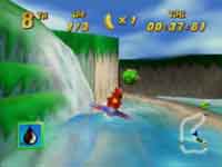 Story: Diddy Kong and friends must stop the evil Wizpig by racing against him. Graphics:This game has some pretty impressive graphics, as do most games from Rare. It was the first to use some graphic effects like texture wrapping. Sound:The sound is kind of cartoony, but good. If anyone knows what the guy is saying in the Hot Top Volcano song, let me know. Play control: Good control for each vehicle. Control varies depending on which character you use, so try them all out. Play value: This game has lots of play value. It has two different adventure modes, time trial modes, and multiplayer features. Rating:K-A Kids to Adults. The only violence involves shooting at your opponents with missles. Summary: An overall good game. Better than Mario Kart, and a fun party game, but not a serious racer. |